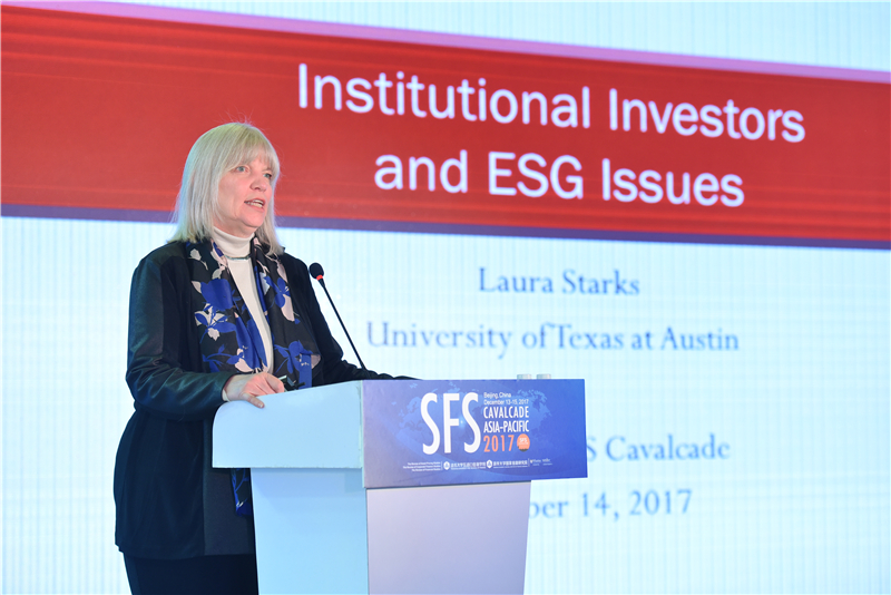 14日,教授斯塔克斯发表了题为“机构投资者和ESG投资”的主旨演讲。ESG (Environmental, Social, Governance) 即高度关注环境问题、社会责任和公司治理的公司。根据市场统计,美国市场中投资ESG公司的ETF(交易所交易基金)在过去2年间翻了一番。目前市场上投资ESG的48只ETF总规模达到59亿美元。在欧洲和亚太市场,投资ESG的ETF也在迅速壮大。斯塔克斯认为这一现象代表着未来金融市场的重要发展趋势,即机构投资者和个人投资者将会越来越多地关注ESG方面的议题。