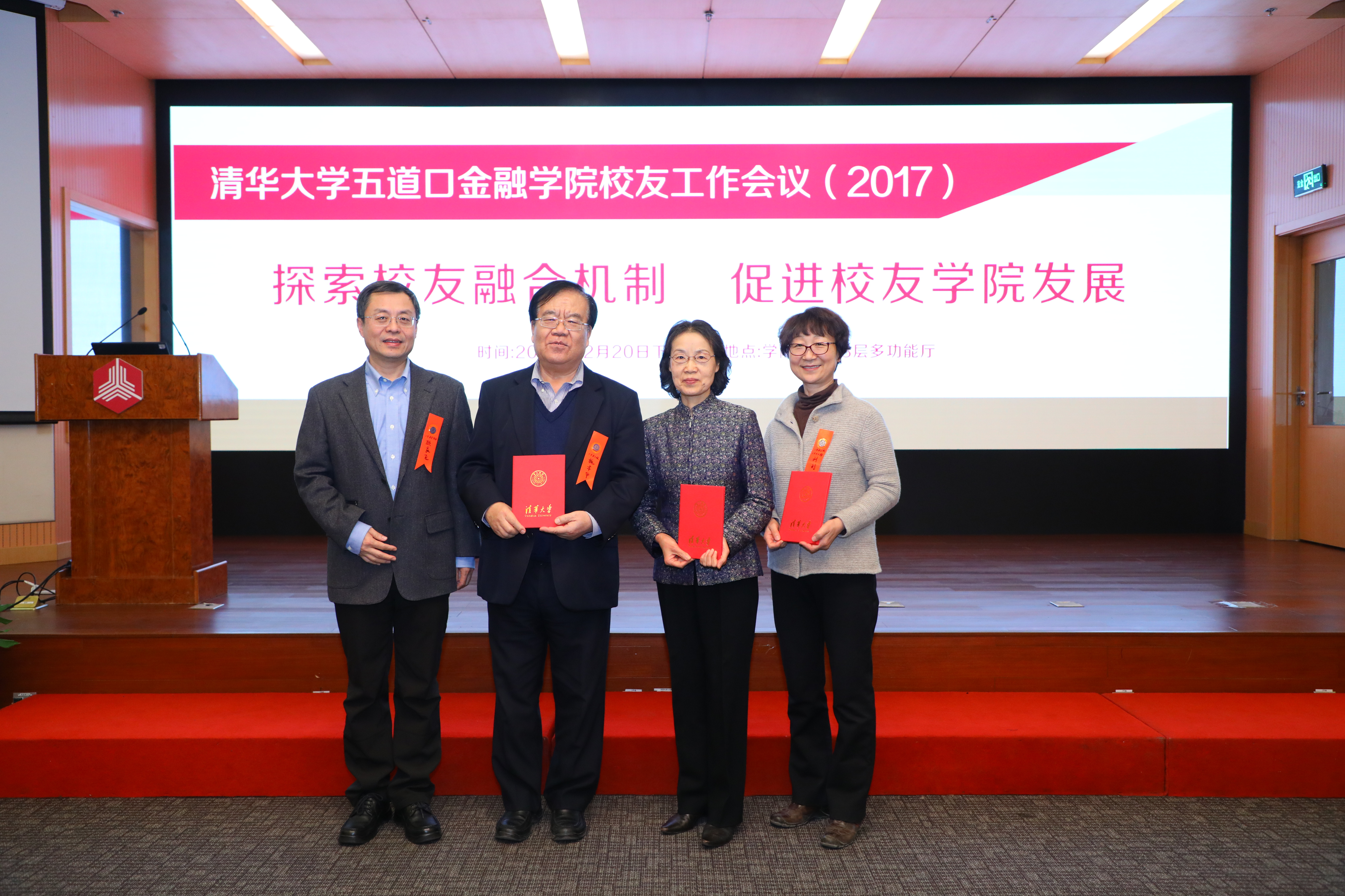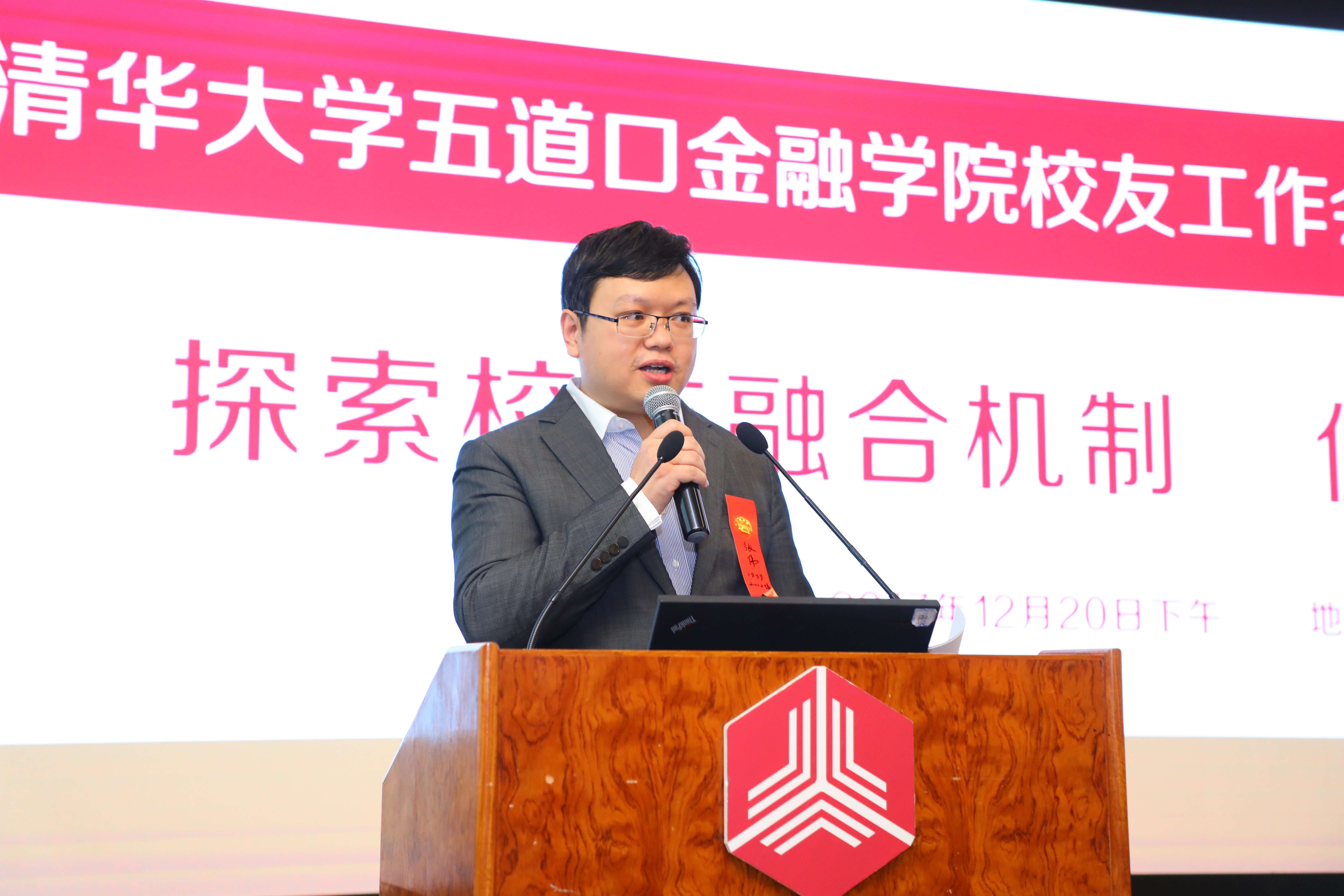 12月20日下午,清华五道口校友工作会议(2017)在学院成功召开。本次会议的主题是:探索校友融合机制、促进校友学院发展。清华校友总会副秘书长崔剑出席并致辞,学院党委书记顾良飞作院情报告,五道口校友会会长、学院理事、1981级硕士校友张志平讲话,学院副院长、1984级硕士校友康以同出席,包括硕士、博士、金融MBA、金融EMBA、全球金融GFD、高管教育部分项目、本科辅修、金媒班等在内近70名校友和同学代表参加会议。会议由学院校友办主任、1999级硕士校友、2002级博士校友张伟主持。