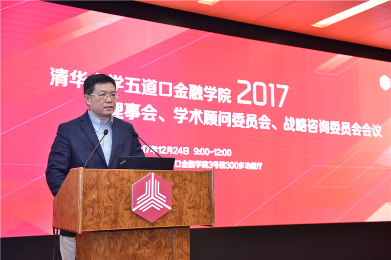 常务副院长廖理汇报了学院2017年主要工作及2018年计划。廖理表示,学院围绕着人才培养的核心目标,以建设世界级的金融学教研团队,国际知名、国内一流的金融与经济政策智库,精品式的学术学位教育项目及高水平具规模的专业学位教育和高端培训为战略定位。廖理从多元化教师队伍、国际化建设、学术与政策研究、履行社会责任、教学科研环境改善、党政密切配合六个方面全面介绍了学院近期的发展动态。廖理表示,2017年学院发展实现了重点突破:六名教师入选国家人才计划、EMBA启动“一带一路”东南亚班、学术和政策影响进一步提升、成立清华大学金融科技研究院。